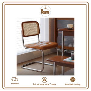 Lưng tựa kết hợp mây đan và đệm ngồi bọc da cao cấp, êm ái, dễ vệ sinh.